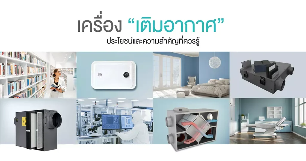 เครื่องเติมอากาศ คืออุปกรณ์ที่ทำหน้าที่นำอากาศบริสุทธิ์จากภายนอกเข้ามายังภายในอาคารหรือพื้นที่ต่างๆ เพื่อช่วยปรับปรุงคุณภาพอากาศภายใน ลดการสะสมของอากาศเสีย ฝุ่นละออง รวมถึงสารปนเปื้อนต่างๆ นอกจากนี้ยังช่วยในการหมุนเวียนอากาศ ทำให้อากาศภายในมีความสดชื่นและเหมาะสมต่อการหายใจมากขึ้น